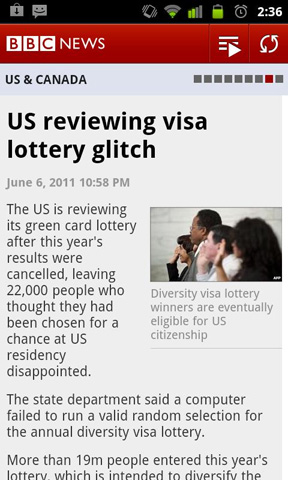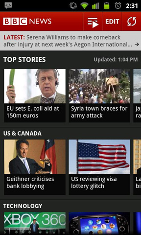 10. BBC News Die BBC hat von seiner BBC News App eine spezielle Version für internationale Leser außerhalb des Vereinigten Königreichs veröffentlicht. Diese bietet Nachrichten und Hintergründe der mehr als 2.000 BBC Korrespondenten aus den Bereichen Politik, Wirtschaft, Unterhaltung, Technologie, Sport und Kunst. Die Beiträge sind in englischer Sprache gehalten, der Download der App ist kostenlos.