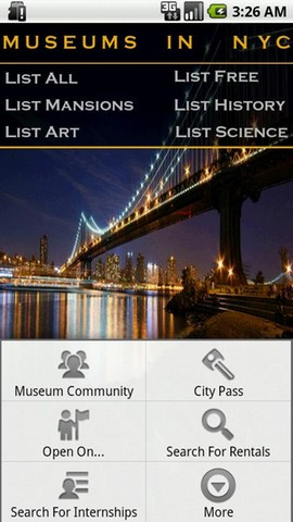 4. Museums in NYC Was wäre ein New York Trip ohne den Besuch eines der zahlreichen weltberühmten Museen? Und mit der Android App Museums in NYC gibt es nun auch noch den ultimativen Museen-Führer. Sämtliche New Yorker Museen sind mitsamt Adresse, Kontaktdaten, Öffnungszeiten, Parkmöglichkeiten und Eintrittspreisen enthalten. Außerdem werden die ausgestellten Gegenstände mit einem Teasertext und Beispielfotos präsentiert. Abgerundet wird Museums in NYC durch Veranstaltungskalender und eine Museums-Community.