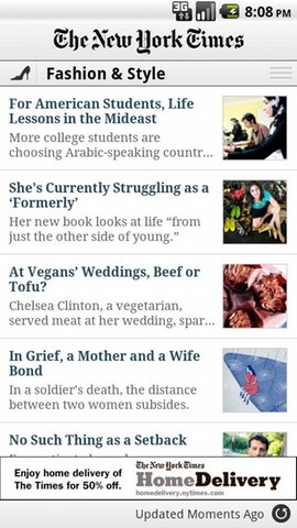 6. NYTimes for Android Die Android App einer der berühmtesten Zeitungen der Welt – die altehrwürdige New York Times. Nutzer der NYTimes Apps finden 25 Rubriken und zum Teil exklusive Videos mit Neuigkeiten aus aller Welt – natürlich auch aus New York City selbst. Die Android Version wurde der gedruckten Ausgabe auch optisch nachempfunden und fängt den speziellen Stil gut ein. Die Artikel lassen sich nach dem Abruf auch offline lesen und per Facebook, Twitter oder SMS mit Freunden teilen.