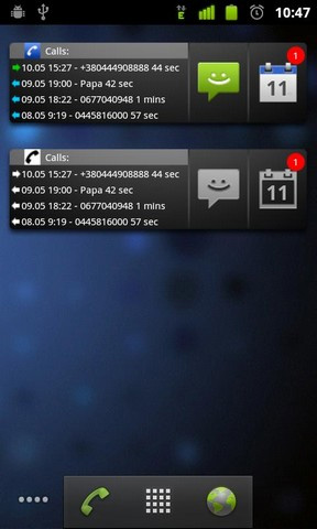 3. Missed It! Missed it! kommt mit allen verfügbaren Größen von 1×1 bis 4×4. Aus dem Widget zeigt Missed it! wahlweise die Anzahl eingegangener SMS, Anrufe und Emails (Gmail-Account) oder auch alle drei gleichzeitig. Der Nutzer kann das Layout anhand verschiedener Parameter (z. B. Textausrichtung, Textfarben) an den persönlichen Geschmack anpassen.