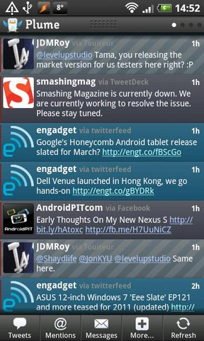 6. Plume (Touiteur) Die App Plume war vorher unter dem Namen „Touiteur“ bekannt und stammt von den Entwicklern, die sich auch für die beliebten Beautiful Widgets verantwortlich zeigen. Die App gehört daher auch kaum überraschen zu den hübschesten Twitter Clients. Viele Einstellungsoptionen und die Möglichkeit, verschiedene Farben zu verwenden, machen Plume außerdem zu einer der übersichtlichsten Twitter-Apps, die in einer kostenlosen und kostenpflichtigen Variante angeboten wird. Beide Versionen sind inhaltsgleich, nur kommt die kostenpflichtige Variante ohne Werbeeinblendungen aus.