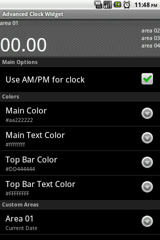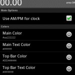4. Clockr (Uhrzeit als Text) Das Clockr Widget hat eine feste Größe von 4×1 (vier Spalten in einer Zeile) und zeigt die Uhrzeit in Textform. Clockr war die erste App im Android Market, die Informationen als Text dargestellt hat und konnte damit einen Trend auslösen. Inzwischen gibt es u. a. mit dem Calendr Kalender-Widget, Minimalistic Text oder dem wp clock light Live Wallpaper mehrere Apps in dem Stil. Im Einstellungsmenü von Clockr lässt sich neben der Schriftfarbe, Schriftgröße und Schattierung auch bestimmen, ob die Uhrzeitanzeige ausschließlich aus Kleinbuchstaben bestehen und ob der Hintergrund des Widgets angezeigt werden soll. Auch der Transparenzgrad des Hintergrundes ist justierbar.
