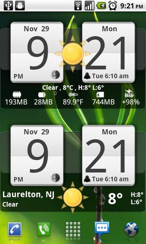 9. Sense Analog Clock Widget 24 (Digital-Uhr) Eine der bekanntesten Uhren auf Android Geräten ist die auffällige, weiße Digitaluhr der HTC-Oberfläche Sense, die HTC bei ihren Smartphones über die Android-Oberfläche legt. Mit dem Sense Analog Clock Widget 24 kommen auch Besitzer von Android Smartphones anderer Hersteller in den Genuss der Sense-Uhr. Und nicht nur das: Mehr als 130 verschiedene Skins stehen zur Auswahl. Darüber hinaus gibt es die Wahl zwischen dem 12- und 24-Stunden-Modus. Neuerdings kann auch das Wetter auf dem 4×2 großen Sense Analog Clock Widget 24 mit angezeigt werden.