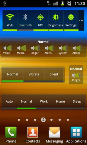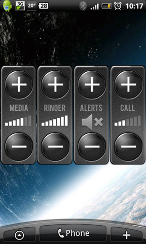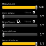 4. Volume Control + Volume Control+ bietet zwei verschiedene Widget-Größen (1×1 und 4×1). Der Nutzer kann aus einer Reihe vorgegebener Farben und Hintergründe wählen. Außerdem kann er bestimmen, ob er lediglich das Lautstärken-Symbol oder die verschiedenen Lautstärke-Quellen auf dem Widget sehen möchte. Ein Fingertipp auf das Widget bringt ihn zum Einstellungsmenü, wo er alle Tonquellen separat einstellen kann. Volume Control + kann kostenlos aus dem Android Market heruntergeladen werden.
