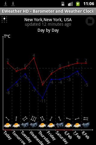 14. Wetter, Erdbeben, Barometer Das Widget bietet eine Wettervorhersage für die nächsten 24 Stunden sowie eine Zehn-Tages-Vorhersage. Außerdem hat eWeather HD ein integriertes Barometer mit Luftdruckvorhersage und liefert Informationen zu Erdbeben auf der ganzen Welt. Beim Wetter werden auch die gefühlte Temperatur und die Regenwahrscheinlichkeit angezeigt.