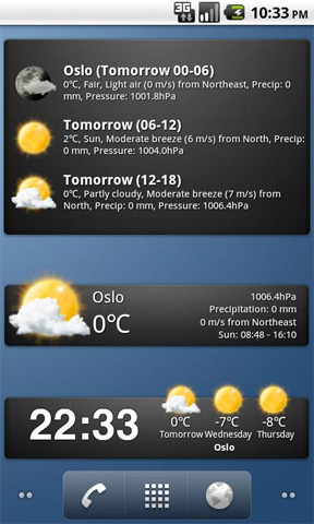 9. Weather widgets (yr.no) Weather widgets (yr.no) bietet insgesamt 18 verschiedene Wetter Widgets in drei verschiedenen Größen. Die Wettervorhersage kann für maximal neun Tage in die Zukunft angezeigt werden. Der Nutzer kann Aktualisierungsintervall und den Transparenzgrad des Widgets selbst festlegen. Außerdem enthält Weather widgets (yr.no) unterschiedliche Wetter-Icons für Tages- und Nachtzeiten.